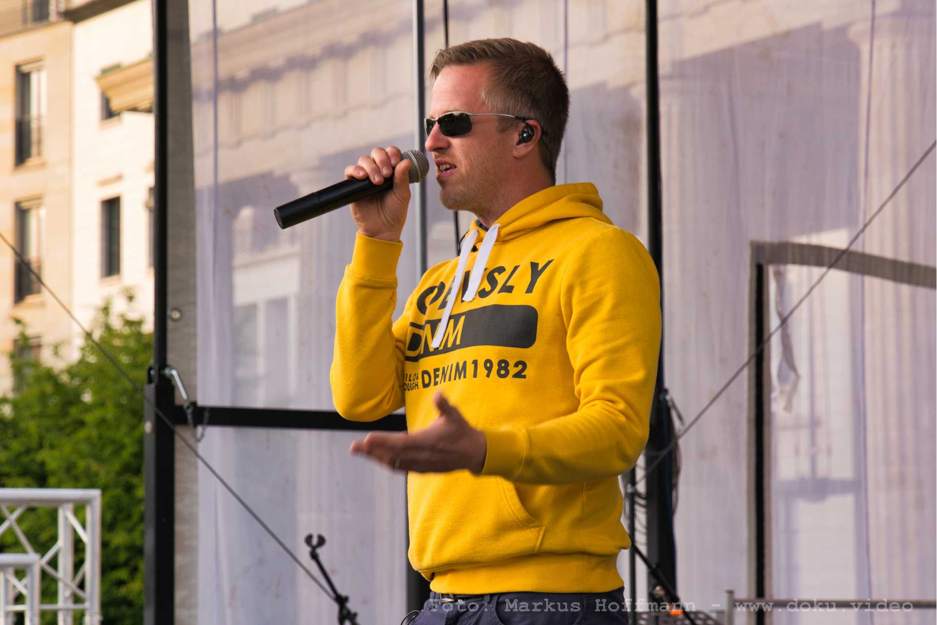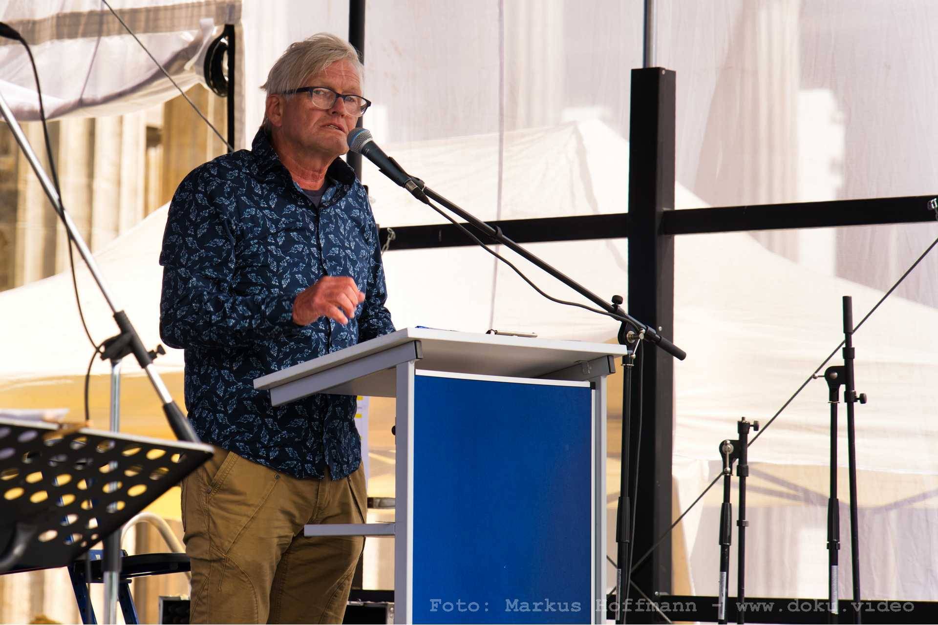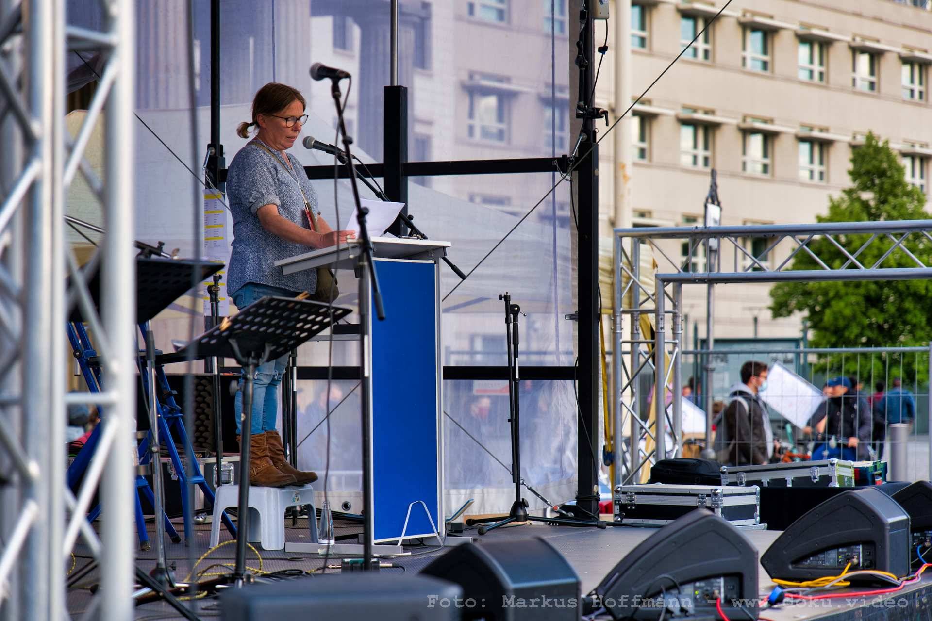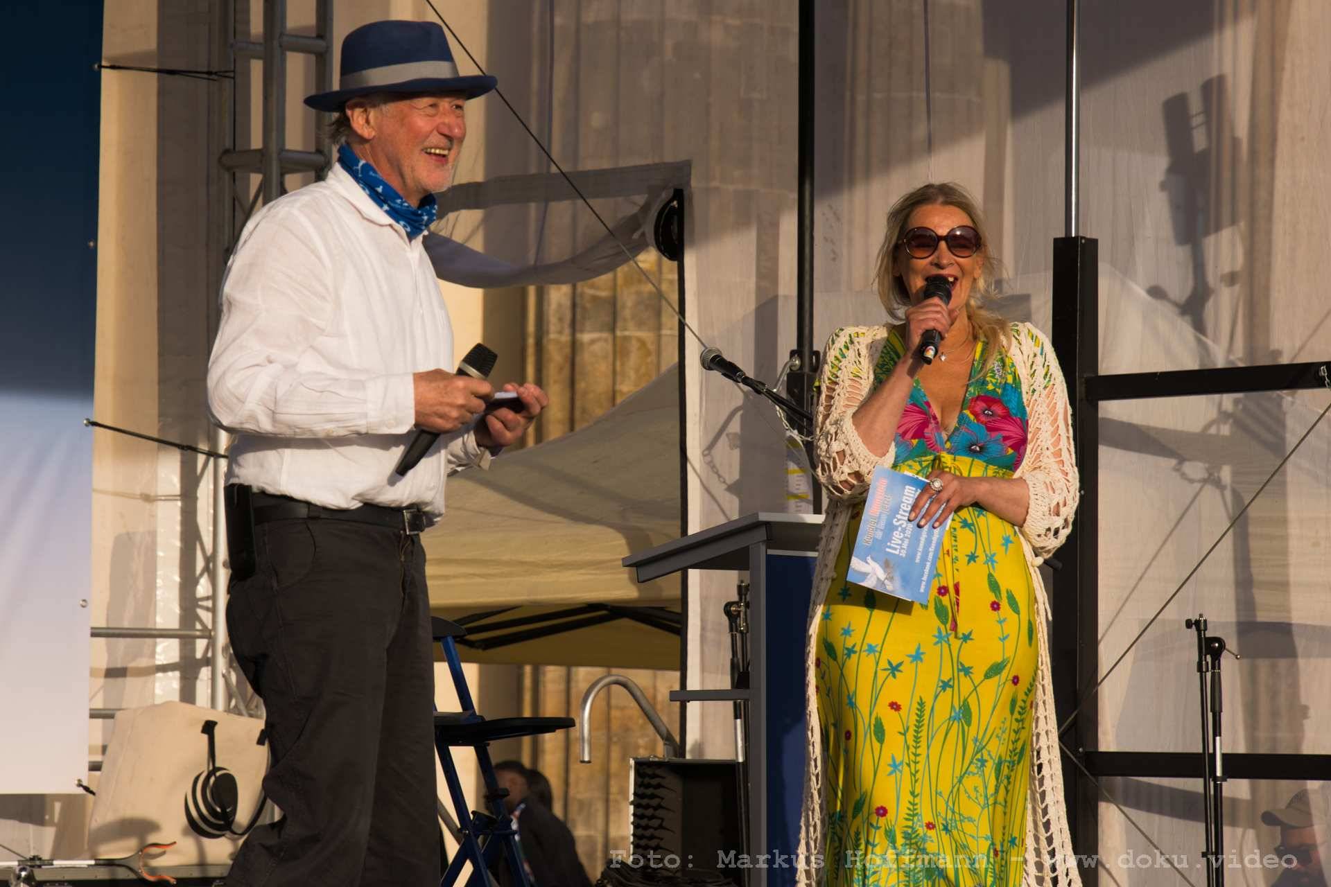 Moderation der Friedensdemo am Brandenburger Tor Mai 2020