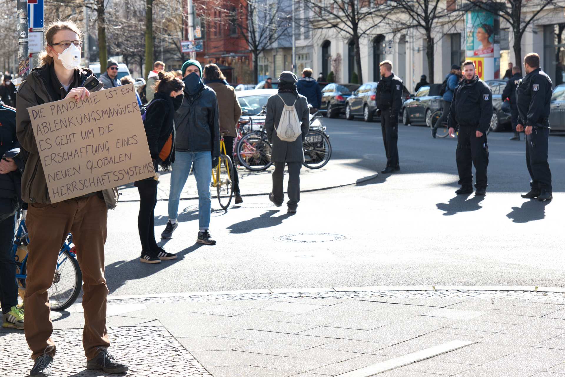 Am 4. April 2020 fand in Berlin die zweite Hygienedemo der Initiative Nichtohneuns statt. Die Bewegung war damals noch am Anfang. Es wurden aber auch hier Teilnehmende von der Polizei abgeführt und teilweise bis in die unmittelbare Nähe des Alexanderplatzes verfolgt. Weitere Informationen, auch zu aktuellen Demonstrationen unter www.nichtohneuns.de
